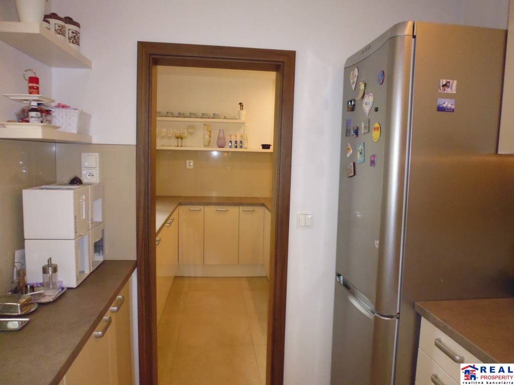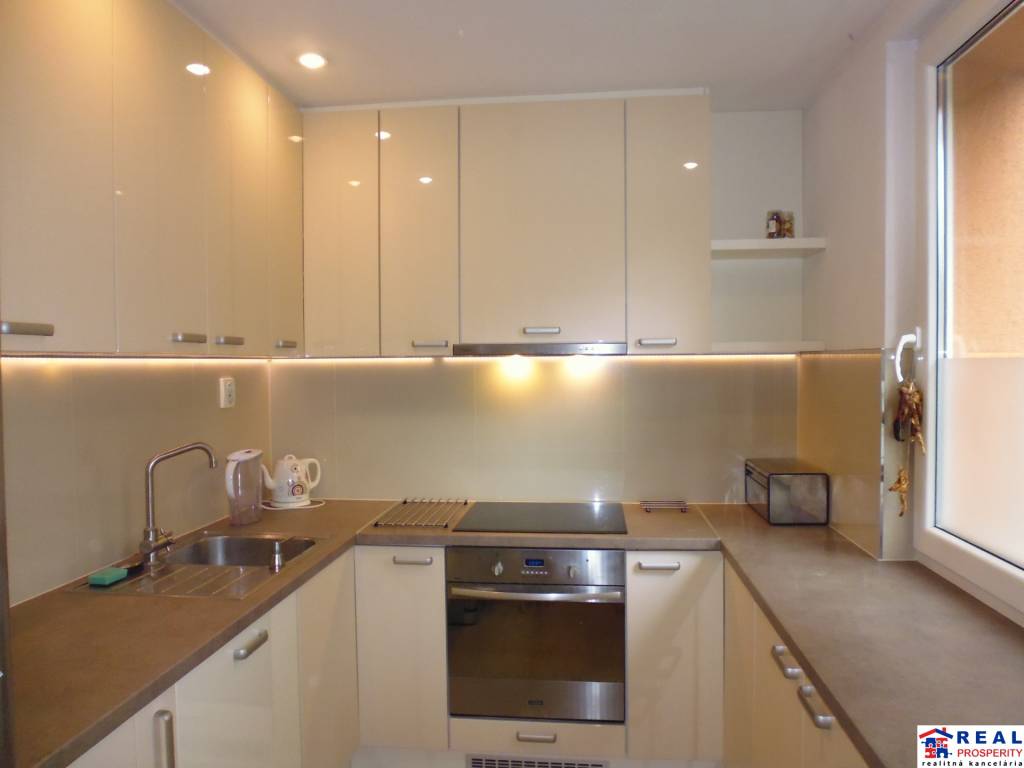 - kuchyňa: kuchynská linka s podsvietením, chladnička s mrazničkou, indukčná varná doska, digestor, elektrická rúra, umývačka riadu, rýchlo-varná kanvica /V/