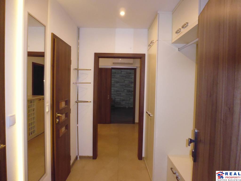 - priestranná chodba: bezpečnostné dvere SHERLOCK, vstavané skrine, skrinky, vešiaková stena, veľké zrkadlo