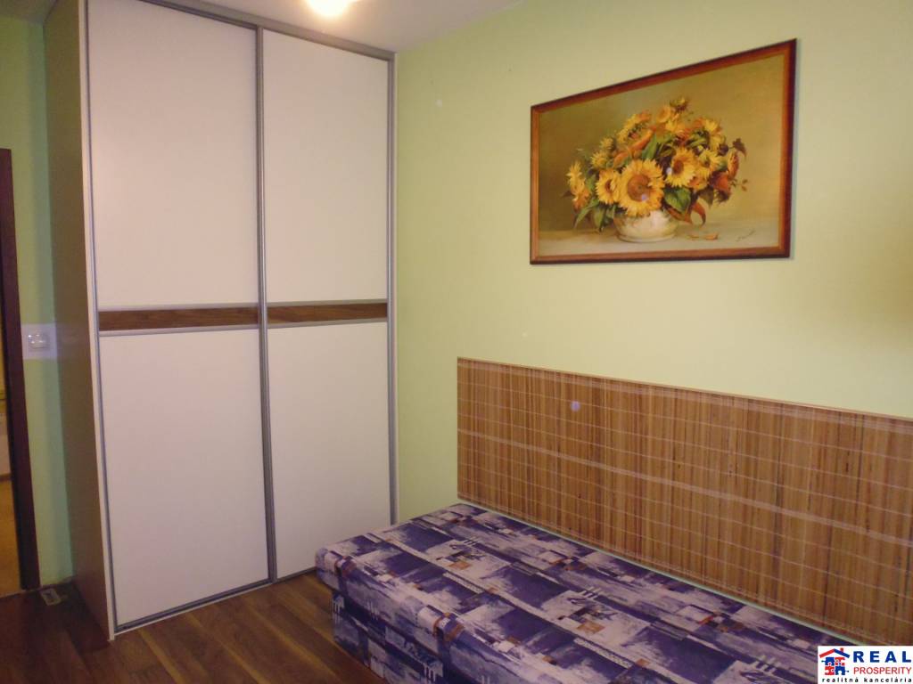 - spálňa: manželská posteľ s roštami, nočné stolíky, vstavaná skriňa, záclona, závesy /Z/